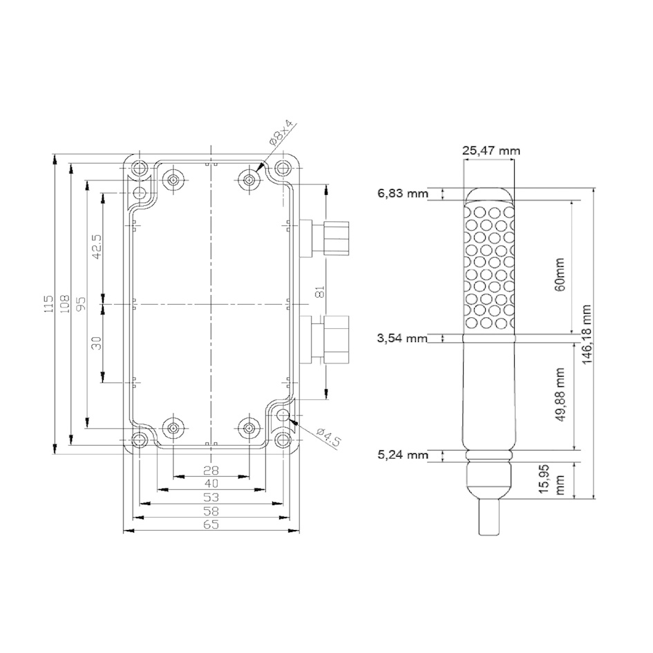 • Gehäuseabmessungen: 115 x 65 x 55 mm (L x B x H)