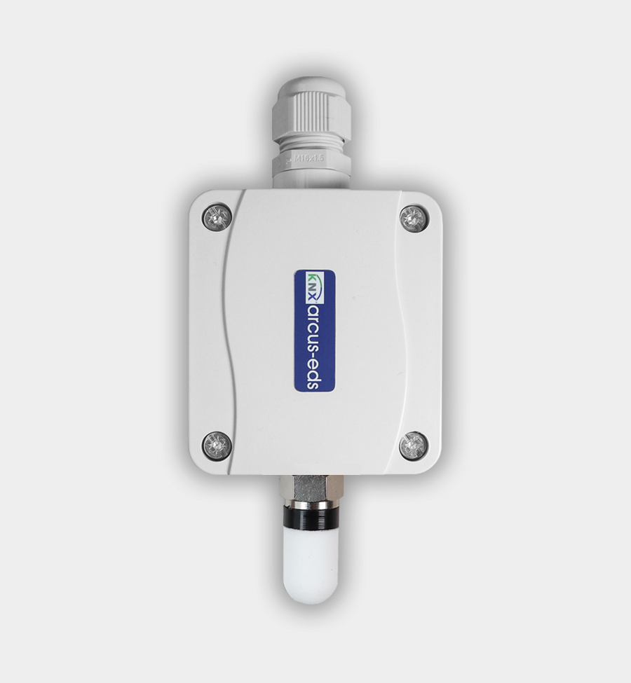 The Arcus-EDS SK10-THC-AFF (item number 30531053) is a surface-mounted KNX sensor for accurate measurement of temperature and relative humidity in indoor or sheltered outdoor environments. The sensors are integrated into the housing and the device provides advanced calculations such as absolute humidity, dew point, and enthalpy. It is designed for HVAC control, ventilation management, and automated indoor climate systems via KNX.