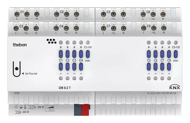 DM 8-2 T KNX – 8-channel dim actuator FIX2, 200 W/ch (R, L, C)