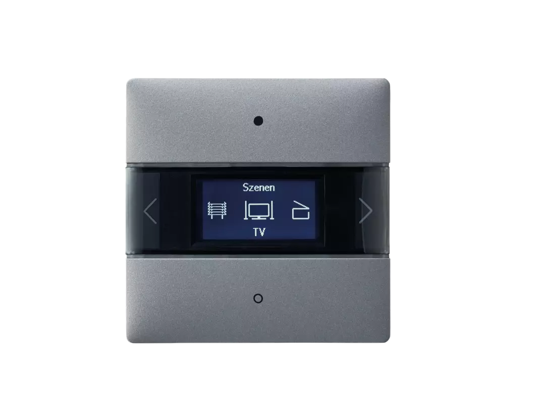 Room controller with KNX bus coupler, display, 20 functions, temperature control, Bluetooth and IONplay app. In white, black and silver. Read more