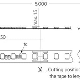 - Cuttable every 5 cm at the marked positions – never elsewhere.
