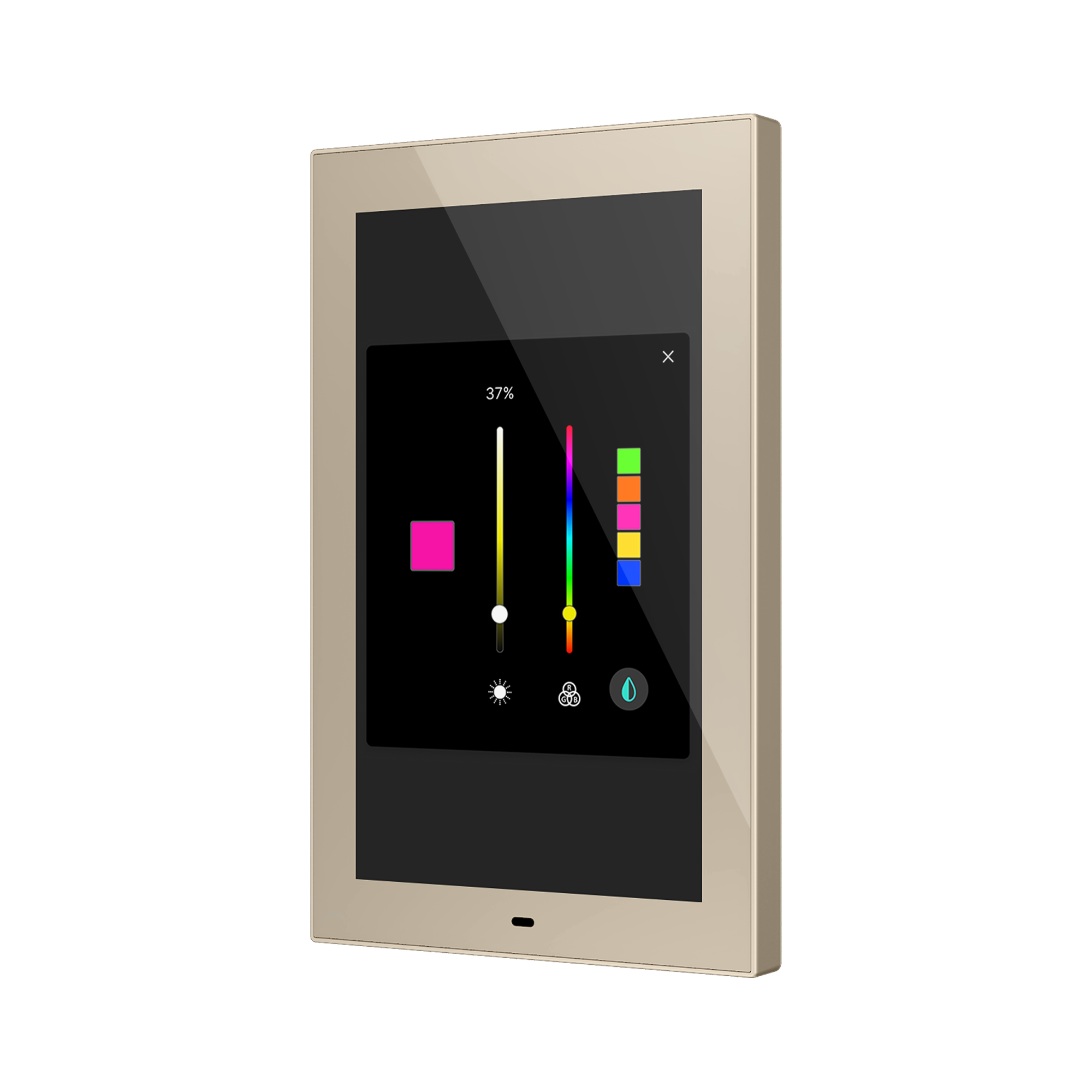 Panel táctil KNX de 5" con 12 páginas y 96 funciones. Control de iluminación, persianas y HVAC. Sensores de temperatura, humedad, luz y proximidad, 4 entradas y KNX Secure. Instalación en caja estándar. Leer más