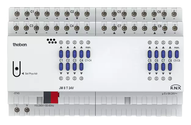 JM 8 T 24V KNX – Actionneur stores 8 canaux FIX2, 6 A 24 V DC, SELV