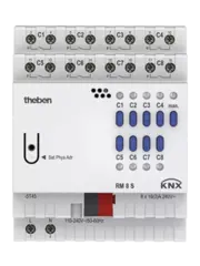 Attuatore KNX con misurazione corrente, 8 canali, 16A per uscita. Controllo manuale, scene e logica. Per gestione di edifici.