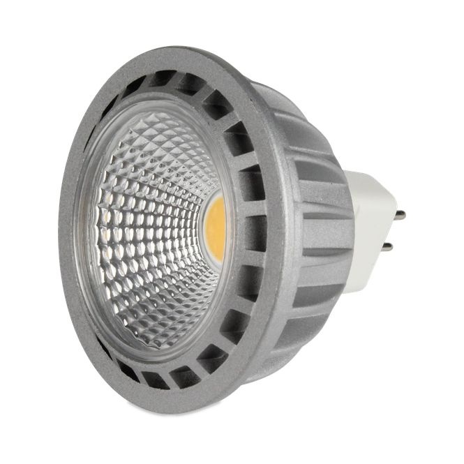 Spot LED GU5.3 MR16, 24 V DC, 5 W, 2800 K bianco caldo, 420 lm, angolo 60°. CRI >90, tecnologia COB, dimmerabile PWM. IP20, corpo in alluminio, durata >20.000 h. Per saperne di più