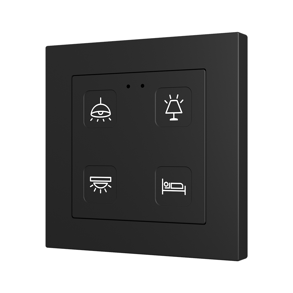 - 4 capacitieve touchzones met RGB-achtergrondverlichting en volledig configureerbare iconen.