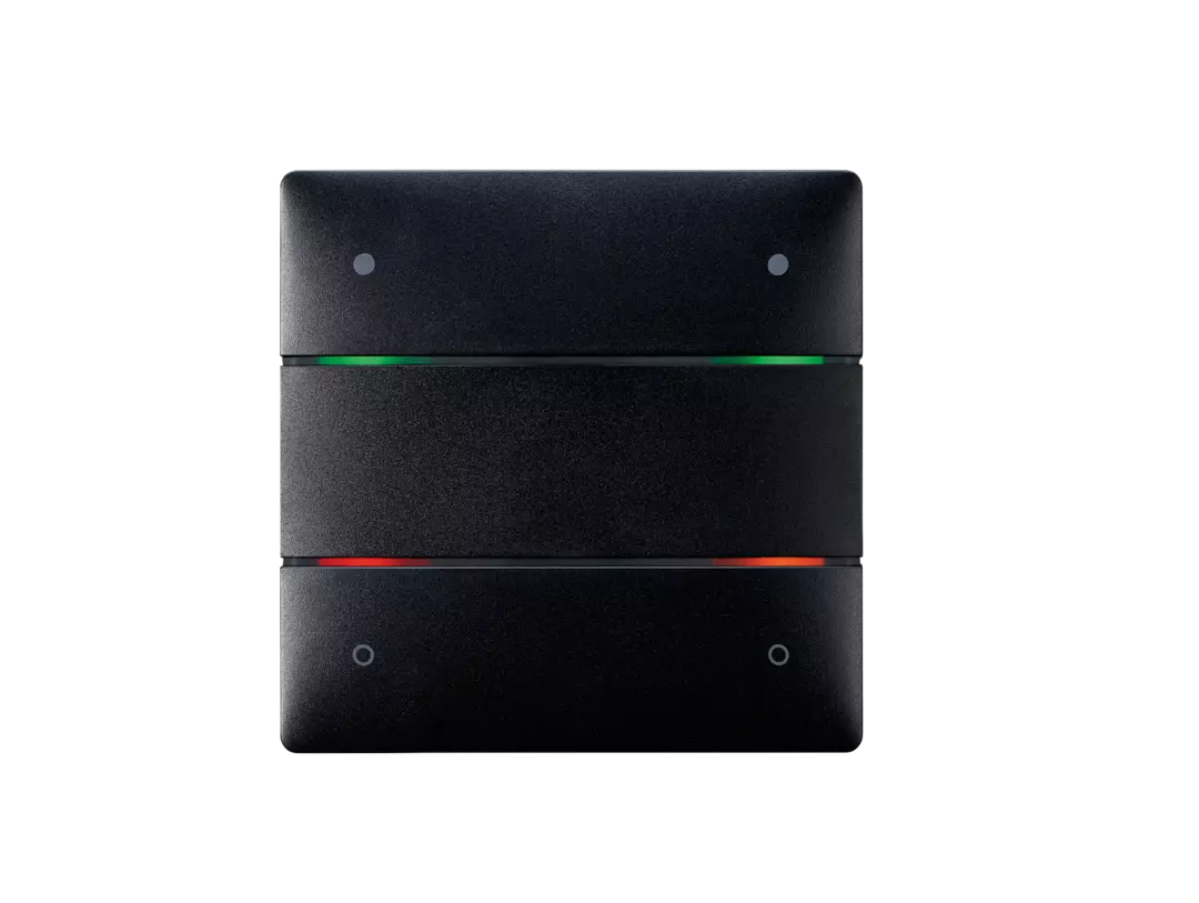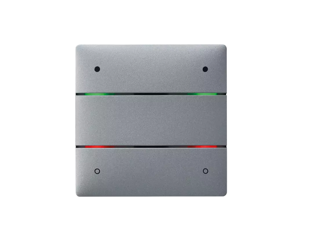 Sensor tátil com 4 botões, LEDs de estado e sensor temp. Disponível em branco, preto e prata. Suporta KNX Data Secure e várias funções de controlo. Leia mais