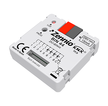 O Zennio BIN 44 é uma interface KNX compacta e versátil, projetada para instalação em caixas de parede ou de distribuição padrão. Este dispositivo oferece 4 entradas binárias configuráveis e 4 saídas LED, sendo ideal para uma ampla gama de aplicações em casas e edifícios inteligentes.